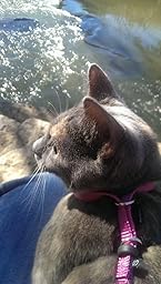 Love the colors and the "bungeeness" of the leash. Fairly easy to put on a reluctant kitty but somehow my 5 month old slipped out of it when I closed my eyes sitting on my french porch! Oops. Probably an error on my part.