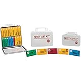 • Refillable 493-piece first aid kit with prepackaged supplies and a closeable steel storage case for use in offices, buildings, and other facilities with 75 or more occupants