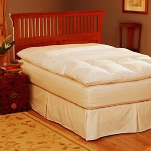 • White Goose Topper Feather and Down Baffle Box Featherbed Mattress Cover Top - Queen Bed Size