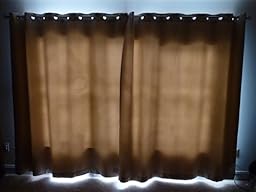 A little hint: If you are looking for a true blackout make sure you buy the curtains quite a bit bigger than your window. I bought one set the only gave me a couple inches on each side of my window and there was quite a bit of light. I was unhappy with that so I bought this set and a set for my sliding glass door that fit better. Now I have roughly 13 inches of curtain above, to the sides, and below my window which has helped keep the light out quite a bit. I'm putting a few pictures up so you can see how these curtains look in black.