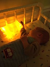 I bought this to put by my baby's changing table so I wouldn't have to turn the light on when changing him at night. I got it when he was about a week old and he is now six weeks old and from the start he has shown an active interest in the light. He turns towards it and stares at it and recently started cooing and smiling at the light and touching it with his fingers. Sometimes when he is being fussy, I set him up in his rock and play with the light on in his lap and it works to calm him on occasion. I bought it in orange and it appears to be good quality. It's been about 5 weeks of regular use and I have not had to change the batteries yet.
