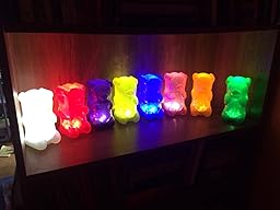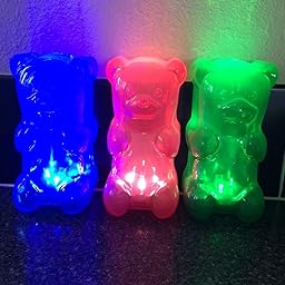 I bought 3, green, blue and pink for my kids which are 6, 2 and 3 months. All 3 of my kids were silent went I laid them down for bedtime with these bears. They lasted all night long and were cool to the touch throughout the night as well. There is 2 ways to light up Mr. Gummy Bear, with 2 AA batteries or DC power (5v-9v) adapter into the DC jack located on the lower back. This nightlight does NOT come with the plug so you'll have to buy that separately. I will update my review after a few weeks and let everyone know how the battery has held up.