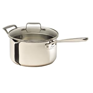 These Emeril Stainless Steel Saucepans work as well as the All-Clad, and are reasonably priced for the quality.