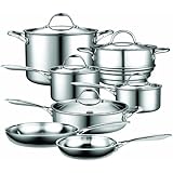 • 18/10 Stainless Steel cookware with a high performance aluminum and copper bonded base for fast heat delivery