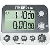 I bought this timer in my supermarket when a previous timer suddenly died. The directions are only printed inside the box, so it is unclear what it is capable of doing. I use a timer for cooking, physical therapy, and napping. Unlike most such timers it displays hours and minutes, but not seconds. It will function as a stopwatch and count seconds but that function only counts up so you must view it all the time. This was useless for some of my balance exercises where I need to close my eyes. If you set it for 15 minutes it not only beeps at 15 minutes but more briefly at 10 and 5 minutes, annoying if you are trying to nap. That is not mentioned anywhere in the brief directions.