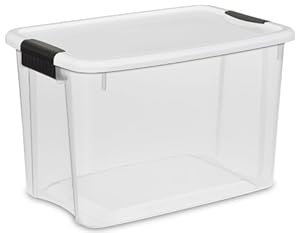 Sterilite 19859806 30-Quart Ultra Latch Box, White Lid See-Through Base with Titanium Latches, 6-Pack