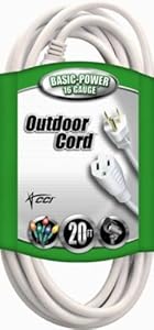 • Coleman Cable 02352-01 20-Foot 16/3 Vinyl Landscape Outdoor Extension Cord, White