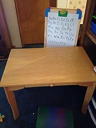 The only issue I have is that is seems like soft wood on top because you can see the mark indented in the table if he presses his pencil too hard and if he takes any toy to it, it scratches up the top, a coat of furniture polish hides it well and I still love it but I wish it didn't mark up so easily.