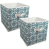 Two 10 by 10 folding fabric bins for $10 is a great deal. The material isn't fantastic, it's slightly rough to the touch (canvas-style) and thin, and the sides will bulge if you put a lot of things in the bin, but I'm still satisfied with my purchase. There's a covered cardboard insert for the bottom to stabilize the bin.