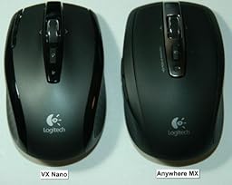 - The VX Nano is quite a bit lighter (by 30-40%) and it makes a noticeable difference. The Anywhere MX is a bit heavier to begin with, but more importantly, it uses AA batteries vs. AAA for the VX Nano. Note that despite the larger batteries (about 2x capacity), The SetPoint software is predicting ~100 days for the Anywhere's AA and ~150 for the VX' AAA, so I guess the new "dark field" laser uses 2-3x more power. I thought of using AA-AAA adapters to keep the weight difference down, but that would drop the battery life to <2 months. For me, that was the biggest deciding factor with the next bullet. UPDATE: I have since discovered that the Anywhere MX can work with a single AA battery, which IMHO keeps the weight more reasonable.