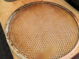 Here's the trick to remember when you use a wire mesh pizza screen: Lots of flour on the bottom of the dough! If you don't do that, chances are you'll have to pry your pizza loose with a spatula which makes for not-so-appetizing looking results. But the screen cleans up easily even after such an ooops. Great crust when it's done right!