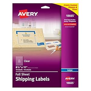 This item: Avery Clear Full-Sheet Labels for Inkjet Printers, 8.5 x 11-Inches, Pack of 10 (18665)