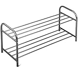 This shoe rack is sturdy enough but make sure the shoe rack portion is inserted completely into the end braces. It is also attractively priced. However, it is not wide enough to store six men's shoes in a single row. It needs to be wider.