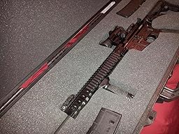 To cut the foam, I used a small razor knife to score the top, then took the turkey-buster electric knife and went to town - was very easy and quick to do. Holds my DDM4V5 with Aimpoint and no mag in the well with room to spare. Also holds 4 30rnd mags (double-stacked) and I still have room for additional gizmo storage...would probably hold it with a 30rnd in the mag but there wouldn't be much room between the optic and the edge of the case. 10/20 round mags would be fine.