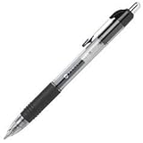 The Uni-Ball Jetstream is one of the new hybrid roller pens, falling somewhere between a gel pen and a ballpoint. It gives a clearer darker line than a ballpoint. It writes as smoothly and easily as a gel pen. It doesn't provide as "wet," thick, and dark a line as a gel pen but the flip side of this is that it will write far longer than a gel pen will before using up its ink.