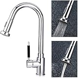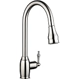 This faucet works well and looks great in my kitchen sink, but do note that it's a "Bar/Prep Kitchen Faucet." Its profile is smaller than you might expect for a kitchen faucet. Its height is great--it's tall enough to allow passing the largest pots and pans underneath. However, the distance from the faucet [where the water comes out] to where the water hits in the sink isn't very great. I hadn't anticipated wanting a sprayer/aerator as part of the faucet...but I wish I had! If I had it to do over again, I'd probably go with a pull-out version of this faucet. However, I ended up purchasing a sprayer/aerator from another site, and am now happy with the overall functionality.