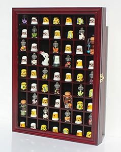 59 Thimble / Miniature Display Case Holder Cabinet Shadow Box, Solid Wood, Felt Interior Background-TC01-CH