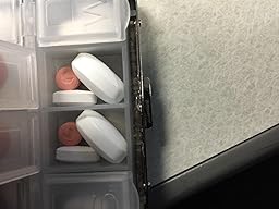 This is exactly what I was hoping for as a gift for a woman who takes a few pills a day and wants something nice to put in her purse rather than those huge, colored, plastic boxes that belong in a bathroom. Small enough to bring along everywhere with plenty of room for several usual-sized pills in each compartment. Attractive - looks like a quality makeup holder.