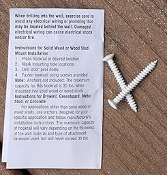 This protrudes from the wall about 3-3/8" (with drywall anchors, a little less with screws). It's about 3/4" deep, so a #8, 1-1/2 screw seemed about right to me (for a stud or an anchor). Stainless steel screws are expensive, but the color is a good match for the hooks on this rack; and they are so much stronger and more reliable than the usual cheap zinc plated screws.
