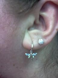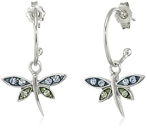 This item: Sterling Silver Blue and Green Crystal Dragonfly Charm Hoop Earrings