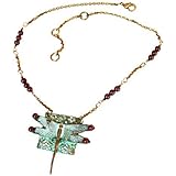 • Green Abalone Dragonfly with Filigree Pattern in a Silver-tone Popcorn Chain & Earrings