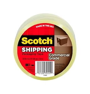This item: Scotch Commercial Grade Shipping Packaging Tape, 1.88 in x 54.6 yd, 1 Roll, Clear (3750)