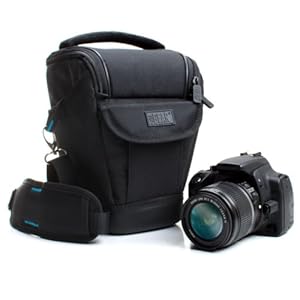 I purchased this bag for my new Nikon D5100. The sling concept was a great idea and my camera with the standard lens fits nicely and seems protected. I even think there would be room for a larger lens :) However I was/am unhappy with the product for these reasons.