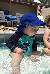 Best hat for an active beach or water baby. My husband surfs everyday and has had our daughter on a surf board since she was 2 months. We have gone through several of these hats as she has grown. It stays put and is light weight in the watet. Protects the back of her neck too!