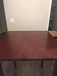 I decided to purchase this table since I only had a limited space in my new apartment. I was enticed by the reviews for this table. It arrived on time, though the package looked like it had been roughed up, the tape was pealing on all sides, open gash on top and just looked like everything inside would be broken. To my relief the table was not damaged and all parts were safe. The set up was easy up and running in about 20 minutes. The table is made of a good solid wood so I was happy about that, once it was standing I noticed that two legs were causing the table to wobble so I tightened the screws and that dos not help, so I took it apart and put it backed together and again it would wobble. I decided to just cut out some cardboard squares from the box and it solved the issue. Overall happy with the product and I love the look.