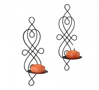 • Gifts & Decor Pair of Swirling Iron Hanging Wall Candleholder Sconce