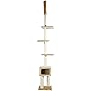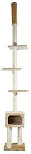 This cat tree is AWESOME! I have used the cheaper floor-to-ceiling versions before and the cheap carpeting on the posts is always destroyed by my cats in just a few months. This one costs about twice as much as the one I used to buy, but the posts are covered in twine and its very sturdy. Its also a bit taller and works better with my vaulted ceilings. Huge bargain at this price! Most cat trees I see at the pet stores are double to triple this amount. Very easy to put together, took me about 15 minutes from box to finished. I have 3 cats ages 6, 10 & 11 - (none are declawed) - they love this cat tree and they enjoy sleeping in the cubby too. Highly recommend!