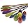 These were a hit at our bbq. The spoons are regular wooden spoons painted in different colors. It's very easy if you lay the eggs flat so if you want a challenge, keep the eggs standing up right. Great puchase though.