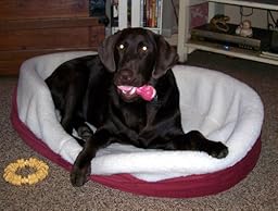 We got the bed yesterday and right off I want to say it was shipped very quickly. We were so excited to get it and to see Dane's (9 month old Choc Lab, weighs 100 lbs)reaction. We weren't disappointed!! As soon as we were pulling it from the box he knew it was for him and got very excited. We put it on the floor and he went right to it, took a smell, then climbed right in! Of course we went to him and his tail was just a wagging and he gave me and my husband big kisses as if he was saying "thank you." Dane is a very large puppy and we were slightly worried the bed would not be big enough. But he fits and even with a little extra room. He seems to love being cushioned from all sides and the secure feeling it gives him. We had so much fun with him in it last night, playing with toys, rubbing his belly and getting kisses. I highly recommend this bed and so does Dane!! Here's a link to a picture of him in the bed: