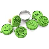 The cookie stamp works great, but it makes a really large cookie. Also, there are other stamp faces that have different words on them, but you have to buy the entire stamp (silicone head and wood handle) to get them. I really wish you could just buy the silicone heads since they pop off the handle easily for cleaning.