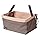 1) The plasticky-canvas basket which is in the shape of a rectangular prism with dimensions: 10 inches tall (bottom to top) X 14.5 inches deep (front to back) X 20 inches wide (side-to-side). The basket is a brown color and definitely has a shiny plasticky look.