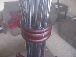 STEP 5 (not shown): Assemble the top, middle, and bottom sections. Guide the metal connecting sheathes a bit with your hand as you tighten to keep them lined up so they look nicer. Screw in the top piece by turning the metal rod in the top center, not the wooden part with the hooks.