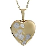 • Sterling Silver Engraved Flowers Heart Locket Necklace, 18"