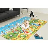 I bought this floor mat to use in a play yard that I set up at my mother's house, since I thought her floor wasn't very clean. Within 5 minutes, our 17 month old twins had torn up the yard and were putting the pieces in their mouth. Perhaps this mat would work as a large puzzle for older children or a floor mat for crawling babies, but clearly it isn't a good choice for toddlers.