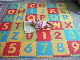 • Large interlocking foam puzzle pieces with removable letters and numbers