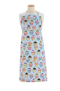• 100-Percent cotton twill cupcakes patterned apron features colorful cupcakes on a light blue background