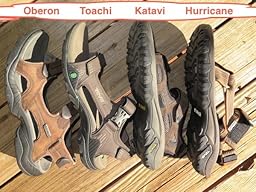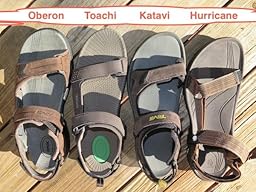 The one extremely good and in fact wonderful difference in the Toachi was the quick release buckle on the center strap. I wish the others had this feature. It meant that I could adjust them for the best fit, and then not touch the velcro again and only use the quick release buckle to get in and out. That was tremendously convenient. I only wished they had fit me better and had a normal foot bed - for this feature alone was a huge huge plus compared to the others.