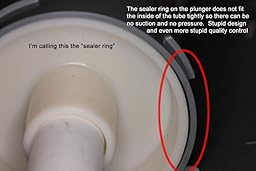 I have owned mine for several years and Love it. You must maintain the inside Plunger!!! Keep clean and well lubricated with Petroleum Jelly ( Vaseline ) and it will create good suction and force to rid the waste. Easier then any Plunger I have ever used!!!! The key to it is VASELINE on the Plunger every time it is used!!!!