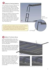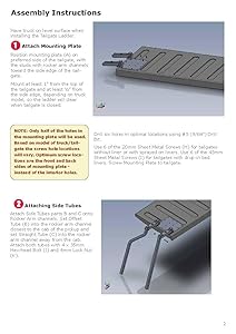 I mounted the steel plate drilling the holes with a 9/32" drill bit and being careful used the supplied screws (caution the screw heads strip easily). I put some grease on the sheet metal screws so they can thread into the tailgate easy and maybe help to keep them from rusting. I than put together the steel ladder with the supplied 3/8" bolts and locks nuts. The length of the ladder is adjustable so you can set the height of the ladder to your truck's tailgate. I purchased some ¾" Velcro tie down straps and used a flat washer with a screw to make my own tie down strap. I made up 2 straps to hold the ladder in place. The ladder is held on with 2 hitch pins and comes off easily if you need to remove it.