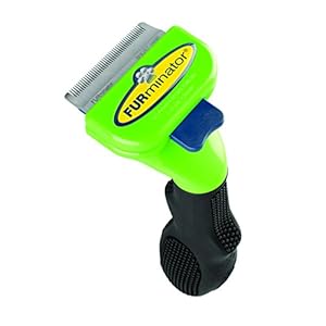 Also, for any who may ask about the frequency of use... Some say to use the FURminator once a month, others say every grooming session. The honest answer seems to be; use your discretion. If you can get by using a standard brush and use the FURminator once a month, do so. If shedding is persistent and doesn't get any better after the first use, give it another go. In my experience, shedding has drastically reduced after one 10-15 minute session with the FURminator and an undercoat rake.