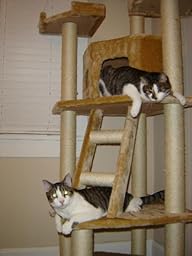 As heavy as this is, I expected it to be a bit more sturdy. It's about an inch taller than I am (at 6'5") and when I first put it together it was rock solid. As about a month went by my three cats seem to have wobbled it apart a little. They're still comfortable enough climbing up it and jumping around (and fighting for territory) but it has me a little concerned as it's next to my TV. The ladder just seems to be in their way when they try to jump up, and the hole in the 2nd level only seems to be there for my entertainment as they occasionally slip through it onto the perch below.