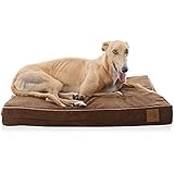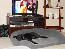 Previously, I had purchased at least 6 dog beds, the flat ortho foam type but my 88# Lab mix never seemed comfortable and kept sneaking onto my white couch at night.I purchased this bed for him in a large after reading the reviews. The bed fit him fine but he could not truly stretch out. I decided to give that one to our 70# shepherd mix and purchased an x-lg a month later. To my surprise, it was a different color of brown and I like things to match. Amazon was very helpful and offered to do whatever it would take to satisfy me. I ended up taking a credit and purchased a second x-lg for the smaller dog. I wish they would've made the x-lg a 45" because they take up considerable floor space but both dogs absolutely love these beds. They are very easy clean and my dog has stopped trying to sneak onto the couch after we go to bed:) Both dogs like to curl next to the bolster or put their head on it like a pillow. I gave them 4 stars instead of 5 only because of color issue, otherwise, definitely a 5 star!! bed.
