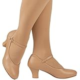 I've been performing in Musical Theater shows professionally for 10 years, and this is my favorite shoe to wear. I do purchase my regular street shoe size in this shoe, even though many people recommend purchasing a half to a whole size larger. I originally purchased a half size larger, broke the shoe in, and now it has stretched to the point that I almost cannot wear them anymore. This is a fantastic shoe that works well for musicals, nights out dancing, or for a costume shoe. The split sole allows your foot and ankle total movement and control, the heel is the right height, and the strap is easily adjusted for fast costume/shoe changes. The nude is the only color I have used thus far, and the only problem I have is if the stage is painted black, it might come off on your shoe, depending on your movement. This is a more expensive character shoe, but I call it the poor man's LaDuca (a split sole character heel that costs upwards of $200). Great buy! If you dance, this is your shoe - and I have a wide foot for a dancer.