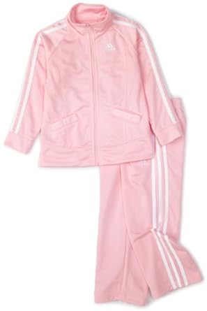We are an "Adidas" family so was excited to add this to our collection. The outfit is cute and is a nice pink color. Our little granddaughter swims in pants and the legs are just too wide. Makes it difficult for her to crawl around in the outfit. The weight of the material is really nice for chilly autumn days. Would recommend Adidas modernize the outfit a little and decrease the size of the pants.