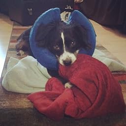 My scaredy-cat wimpy dog LOVES this pillow collar! She was terrified of the clear plastic cone and managed to break it from freaking out and crashing into things. The soft "comfy-collar" type doesn't allow for peripheral vision which is a problem for her and it entraps her ears as well as snags on everything in sight because of the exposed velcro. I have a Skye Terrier (picture a sheepdog on a basset hound's body) who obsessively licks and chews. (We've spent a fortune on food trials, testing and other meds and such at the vet, so please don't offer advice.) We keep this collar on her pretty much all the time because it prevents her from chewing herself bloody and she loves that she has a nap pillow that goes everywhere with her. I do have some suggestions for you that we've learned over the past few months of using this collar that may save you time and make the collar work even better for you. 1. Put your dog's own collar through the loops inside this collar. It will look like it will never fit, but if you had the dog collar adjusted properly before this addition, it will still fit. It conforms around your dog's neck once the inflatable pillow collar is on. It will be much easier if you use a dog collar that kind of plugs in like a seat belt, rather than one that has the thingy that you have to poke through a hole. 2. Inflate the pillow collar to the maximum amoumt of air it can possibly hold and make sure you poke that little valve thing down inside or it will deflate on you. 3. CUT THE TOES OFF A LARGE SOFT SOCK and put it on the inflated collar. (I'll explain this more in a minute) 4.Read more ›