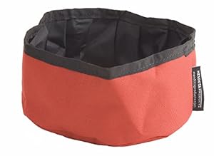 After looking around for a while, I decided on the Mendota Collapsible Dog Bowl. I often work from cafe's and try to find places where I can sit outside with my Labrador. I keep this dog bowl in my backpack, and whip it out if a bowl isn't provided. At first, my dog through it was some type of novelty toy device, but over time he's become more comfortable and seems to be getting the hang of it.